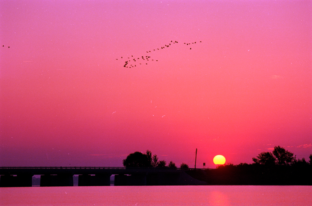 Fehér Zoltán: Örültünk neki, hogy néhány analóg fényképezőgéppel készített kép is nevezésre került. Ez a fotó is ilyen és ez önmagában ad egy különleges hangulatot, ami számunkra kiemeli a többi kép közül. A kontrasztok és ez a rózsaszínes képi világ teljesen új köntösbe öltözteti a poroszlói naplementét. A víztükör, mintha eggyé válna az éggel, amit egy vékony vonalban szakít csak meg a part és a poroszlói híd mélyfekete sziluettje. Külön érdekesség, hogy a fotó elkészültekor Poroszlón még nem volt meg a kerékpáros híd. Az arányok is szépen el vannak találva, gyönyörűen jelképezve azt az égi színvilágot, ami a tisza-tavi naplementéket jellemzi. Az ég sterilitását az elvonuló madarak sziluettje töri meg. A Nap pedig, mint a táj része bújik meg a horizonton. Gratulálok a pillanat megörökítéséhez!