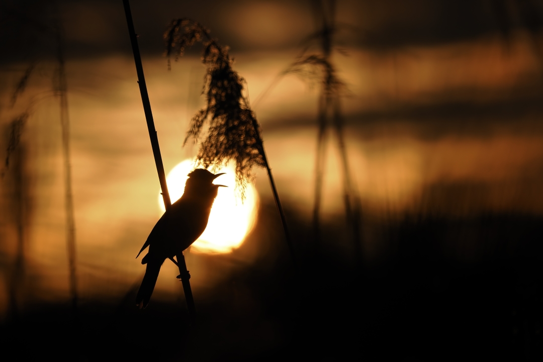 Szendőfi Balázs: A napfelkeltés vagy naplementés képekkel vigyázni kell, de ez kiemelkedik közülük. A nádirigót és a többi nádiposzátát igen nehéz éneklés közben lencsevégre kapni, mert rejtőzködő, nádasban bujkáló madarak ők. Ezen a képen tökéletesen sikerült ábrázolni az önfeledten udvarló vagy épp területét elszántan (az énekével) jelző nádiposzátát. (Kevesen tudják, hogy a nádirigó nem rigó, hanem a legtermetesebb nádiposzátánk.) És hogy még az alacsonyan járó napkorongot is így sikerült mögékomponálni, az igazán nem mindennapi teljesítmény.