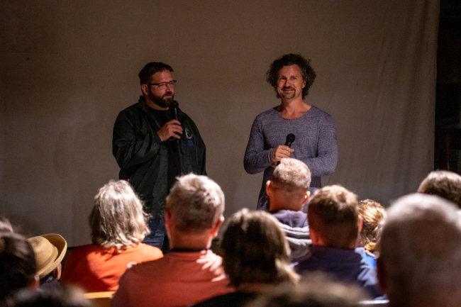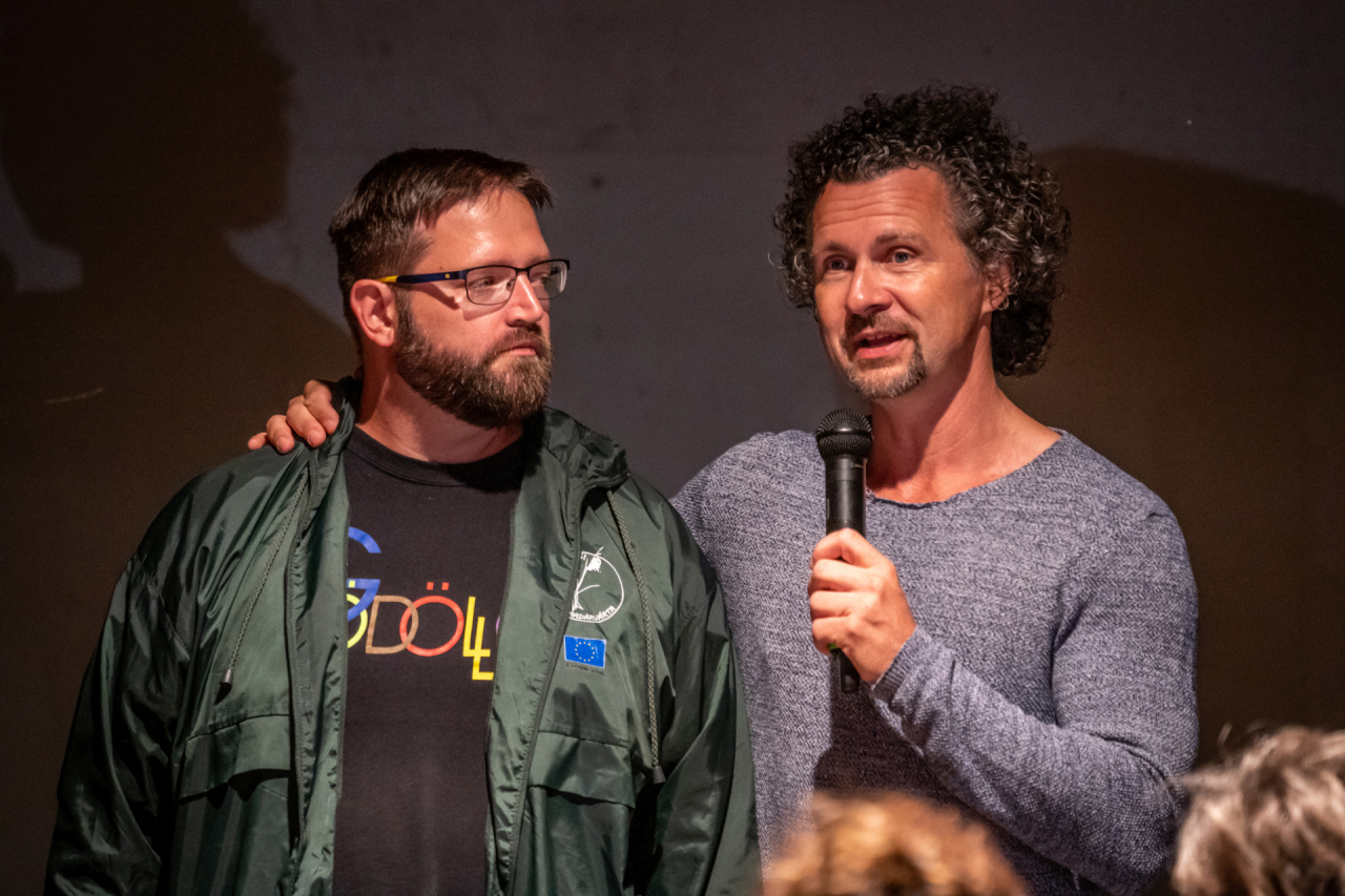 Szendőfi Balázs a film rendezője, írója és vágója, operatőre (jobb oldalon), és Ljasuk Dimitry narrátor és mesélő, szereplő és operatőr (bal oldalon).